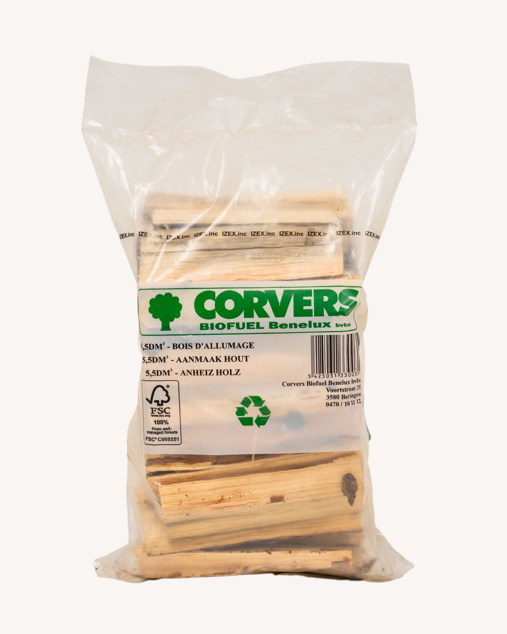 Aanmaakhout kopen is een slimme basis voor elk goed vuur. En dankzij de handige verpakking van 5,5 dm³ heb je altijd genoeg in huis voor verschillende stookmomenten.