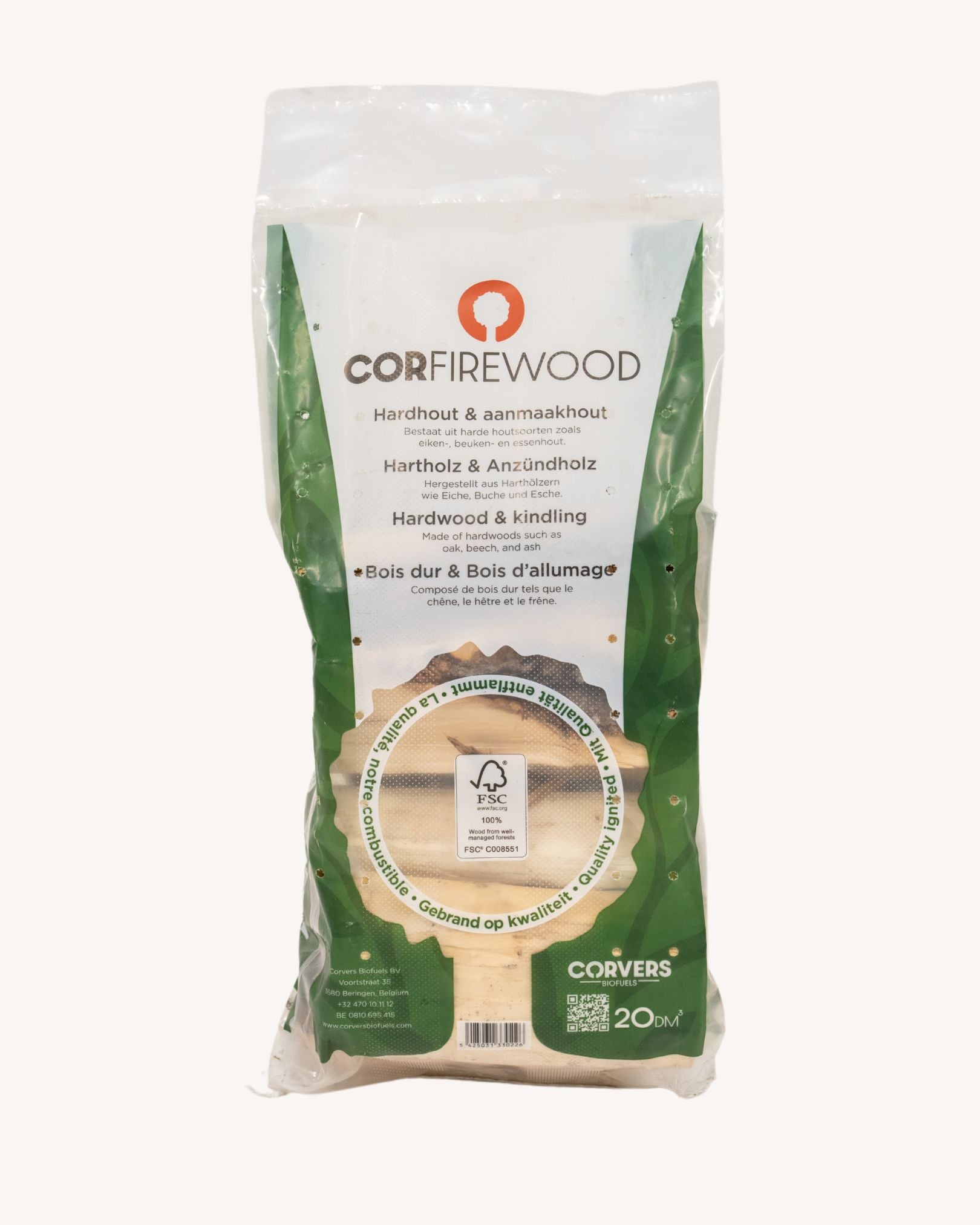 - Houtsoorten: Mix van ovengedroogd hardhout (beuk, berk, eik, afhankelijk van beschikbaarheid)
